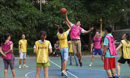 比賽開始前,江總熱情地為我們動員致詞,我們也以熱情點燃了整個籃球場,本著“安全、友誼第一,比賽第二”的原則,在球場上積極投入比賽。首先,進行第一場比賽的是2隊飛虎隊和6隊卓越隊,隨著音樂的響起,比賽正式開始。比賽過程中,隊員們熱情高漲,雙方隊員你爭我奪,引來不少園區人員駐足觀看,公司總經理陳斌先生評價比賽比想象中要好得多。比賽進行一段時間后,天空開始下起了雨,但隊員們和拉拉隊們都沒有為此而暫停比賽,展現了美松科技良好的精神面貌。在下半場的比賽中,比賽規則的修改(女生進一球記為兩球)把比賽推向了高潮,場上歡呼聲、吶喊聲此起彼伏,隊員們矯健的身形,揮灑自如的動作成為了園區一道靚麗的風景線。經過20分鐘的激烈爭奪,最終6隊贏得了第一場比賽。