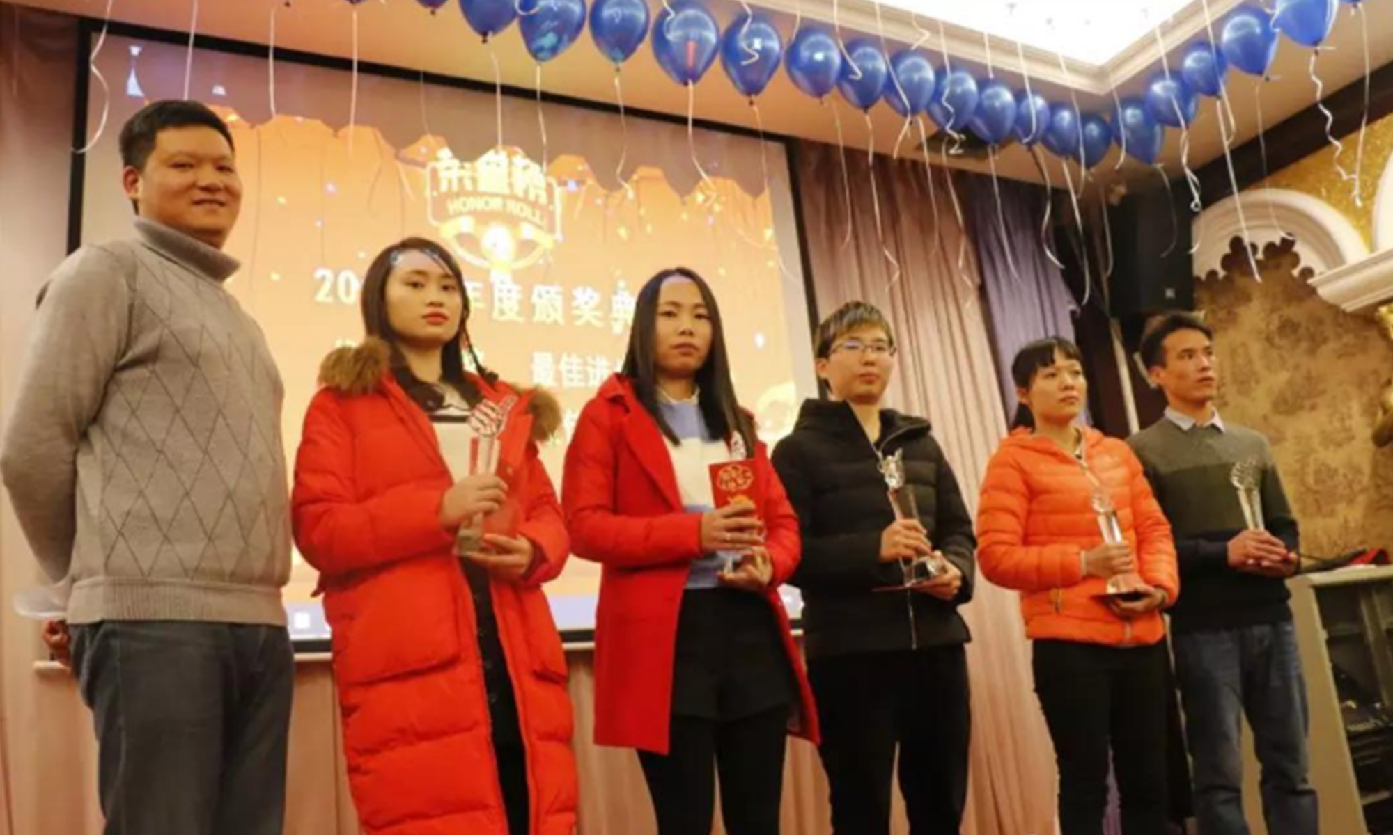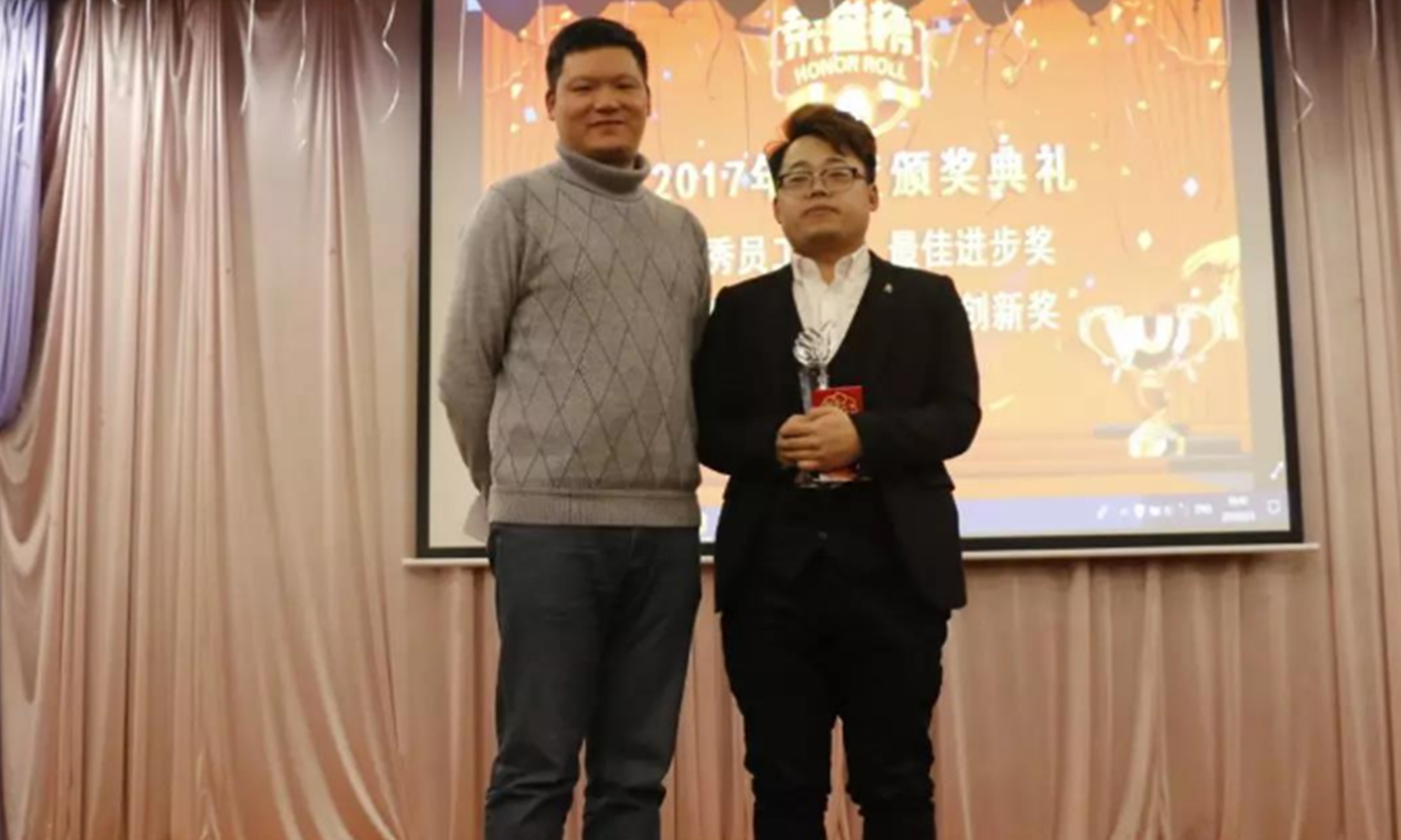 在過去一年里,公司業績上了一個臺階,規模快速擴展,這些都離不開公司管理團隊及全體員工的努力和付出。節目表演完畢后,主持人激情洋溢地宣讀2017年度獲得“優秀員工獎”、“最佳進步獎”、“最佳新人獎”、“最佳創新獎”、“最佳項目獎”等11位獲獎者的名單,獲獎者懷著激動而興奮的心情走上領獎臺接受公司領導的嘉獎,董事長陳斌先生還為每位獲獎人員頒發榮譽獎杯及獎金。每位獲獎者也發表獲獎感言,從他們的獲獎感言中,我們深深的感受到了他們對公司的堅定信念以及對未來的期望,他們就像夜空里閃亮的星,是公司全體員工的好榜樣,值得我們每一個人去學習,然后在未來的日子里為公司創造更大的價值。