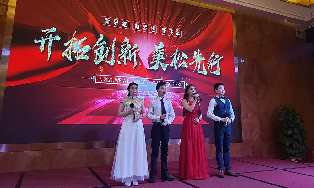 首先董事長陳斌先生上臺致開幕詞,回顧了美松2020年的心路歷程,肯定了2020年的所取得的輝煌成績,美松一步一個腳印,一年一個新高度。并對2021年提出了更高的要求,2021年我們要一手抓才,一手抓全;一手抓人才,一手抓安全;一手抓業績,一手抓發展;2021年我們要學習三牛精神,腳踏實地,深耕細作,堅強不息,忠于職守;2021年我們要用業績說話,用數據說話,用態度做事,用品質做人,打造美松品牌、美松文化、美松產品走向未來更多領域!