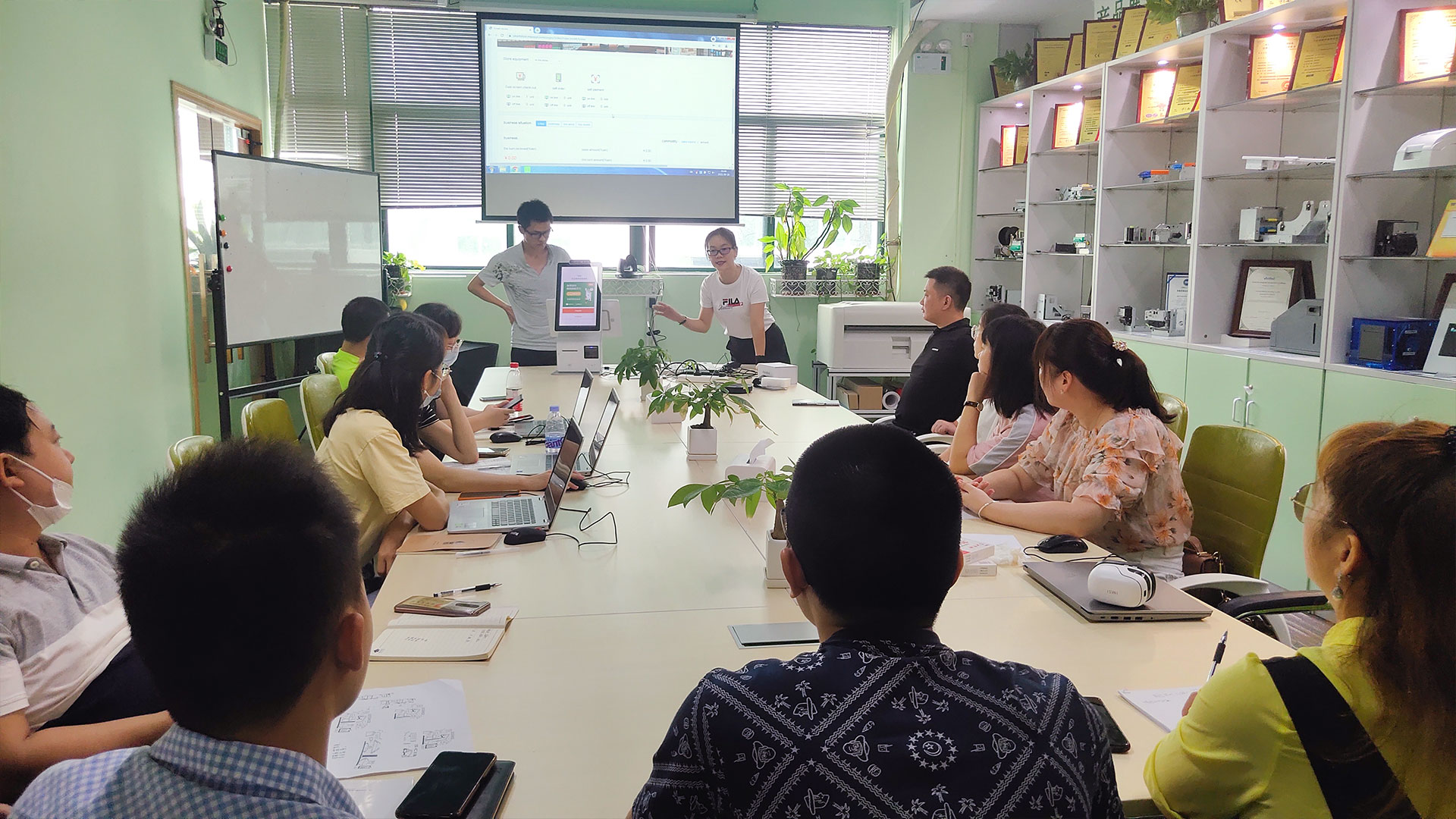 產品線的發展應當把質量工作放在與市場開發同等重要位置。守住質量紅線、提高質量水平是美松集團的立足之本;做好專業技術培訓、統一技術規范是向客戶提供高質量服務的必要條件。在產品介紹環節,市場運營專員熊艷艷、軟件工程師劉方以及研發工程師楊罡分別對產品進行了詳細的演示與講解。同時結合實際案例與參會人員進行了積極互動和交流分享。來自長沙公司的外貿負責人Amy就手持移動打印產品、智慧門店商超方案、桌面POS打印機使用及疑問,技術人員憑借其豐富的經驗、扎實的專業知識以及對公司產品的深刻了解,讓大家對每一款產品的性能特點、使用方法、注意事項等有了更為全面的認識,并針對實際工作中常見的疑惑一一提問、擊破。短短半天的培訓針對性強,效果顯著,大家紛紛加入討論,認真做好筆記。