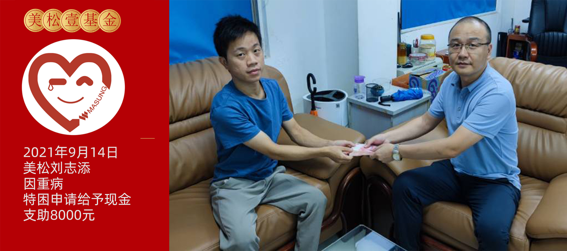2021年9月14日,光明工廠的同事劉志添因重病,特困申請,給予現金支助8000元,目前已經出院康復上班。