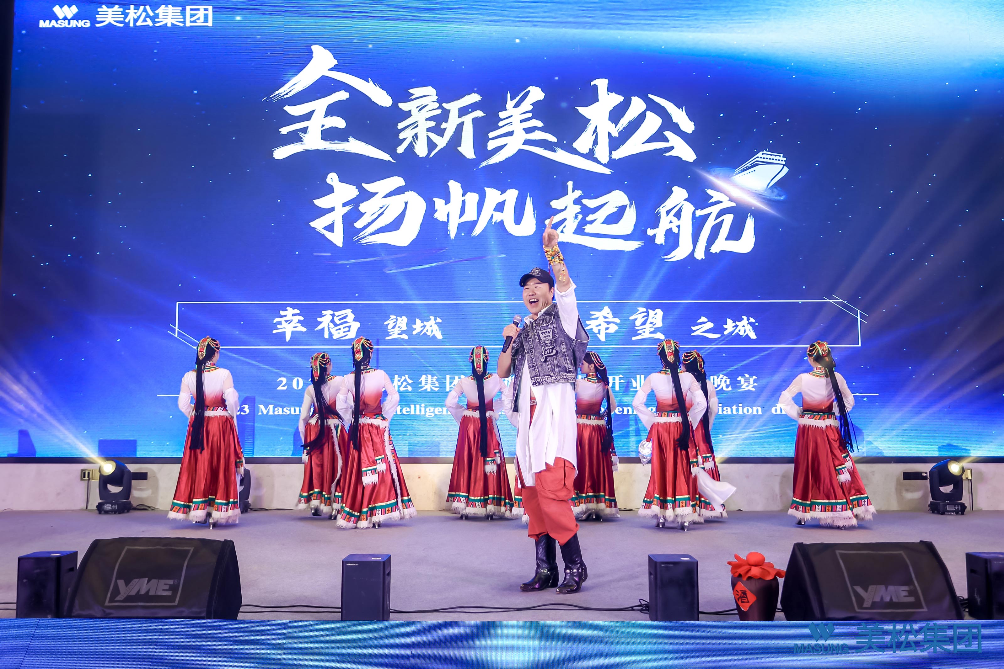 現場節目豐富,頒獎抽獎活動不斷,貫穿著整晚。科技感十足的《鏡面嬌娃》、湖南著名女高音王莉的《舉杯吧朋友》、《父老鄉親》、現場嘉賓李總與花鼓戲一級演員李小嘉老師的《劉海砍樵》、毛主席特型正強主席和蔣介石特型演員蔣正宇親臨現場互動、小李谷一曾梓洳《鄉戀》、《青藏高原》、《洞庭聯奏》、《賽馬》,還有嘉賓現場表演的“高山流水”暢飲活動,精彩有趣,熱情高漲。大浪淘沙,方顯英雄本色!陳董事長喝的高興也舉杯上臺高歌一曲美松版本的《可能里有你的答案》將整個晚宴現場氛圍推向高潮。
