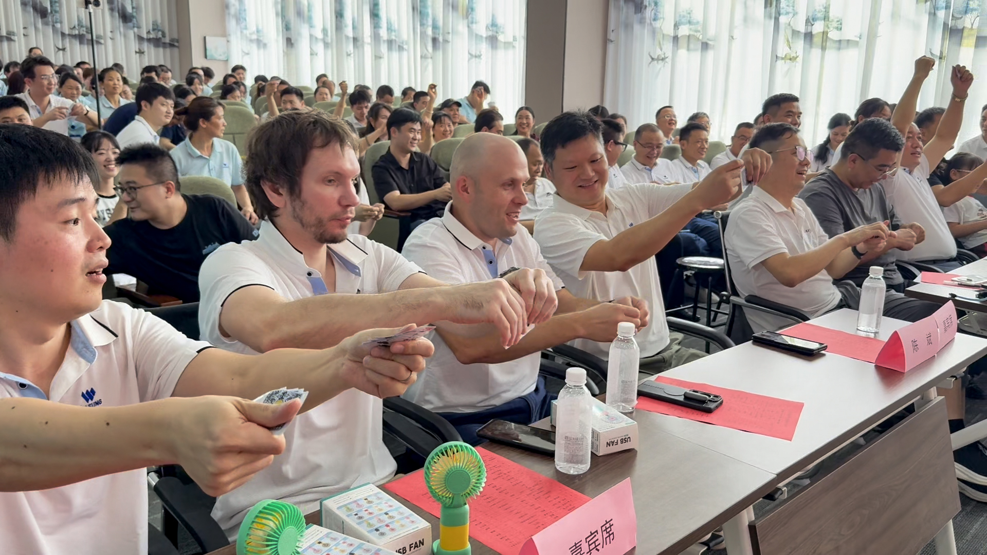 17點30分盛典晚宴,首先由熱情激昂的董助coco上臺發(fā)言,打開了美松人與美松嘉賓們溫暖而激情的交流模式。餐桌上的對話、合作的契機在輕松的氛圍中展開,情感與商務(wù)的界線在這一刻變得模糊而自然。緊隨其后的抽獎環(huán)節(jié),將整場年度盛典大會的熱度推向頂點,現(xiàn)場互動頻繁,笑聲與掌聲交織,幸運與祝福在空中飄散,成為對美松員工辛勤付出最真切的回饋。