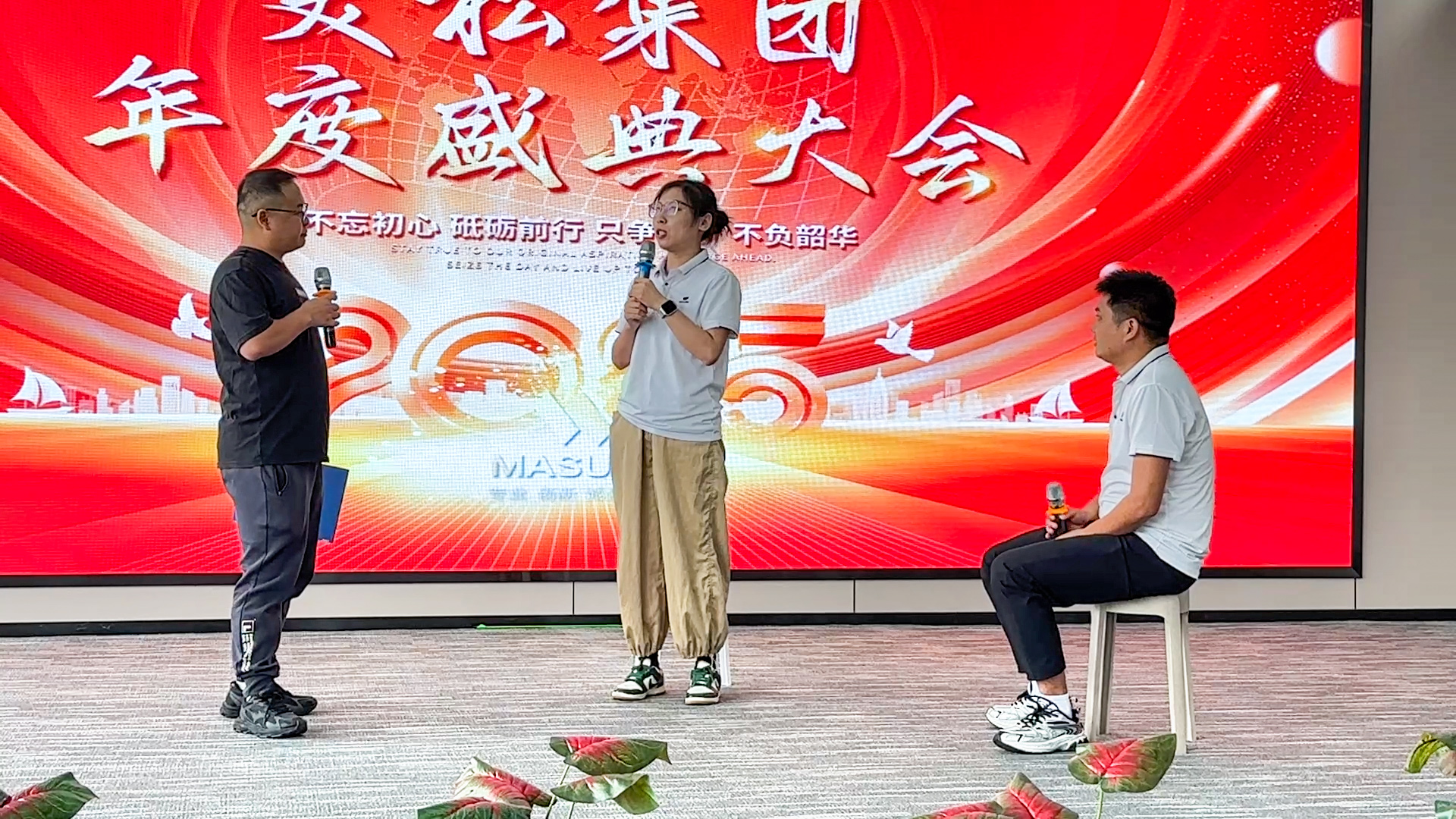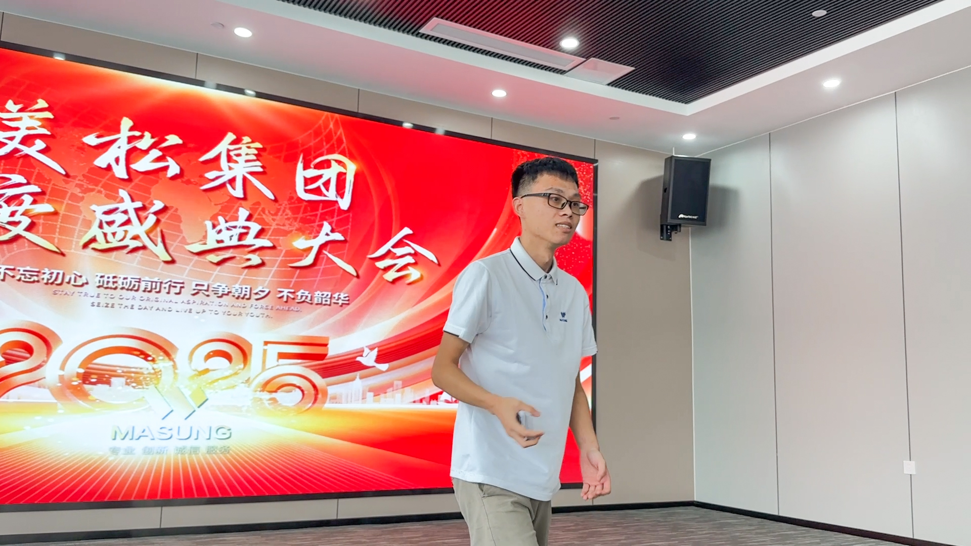 在第19個節(jié)目表演結(jié)束后評委緊張的打分間隙,舞臺聚焦落在了美松集團(tuán)總經(jīng)辦coco身上,她的成長故事更是點燃全場。這位在美松深耕15年的老員工,用歸屬感,價值感與成長空間與美松共生,這份榮譽與歲月的積淀,使她的發(fā)言格外具有穿透力。她以真誠的語氣回顧自己從初入美松的青澀,到如今肩負(fù)重要管理職責(zé)的自信旅程;也見證了公司從10來人的團(tuán)隊發(fā)展至今,在行業(yè)內(nèi)具有一定影響的力量;從點滴崗位成長到跨部門協(xié)同推進(jìn),從個人素養(yǎng)的持續(xù)提升到對公司愿景的堅定擁護(hù),這些分享如同一面鏡子,照見了無數(shù)同事的努力與堅持。她動情的從“責(zé)任、信任、情懷、堅定“四個維度展開與美松人的成長節(jié)點,也表達(dá)了對未來的無限期待。只有大家保持初心持續(xù)學(xué)習(xí)才能將美松MASUNG品牌,美松的打印機產(chǎn)品,美松的完美服務(wù)帶向新的高度!最動人心弦的一幕,是她對“認(rèn)同感與共同成長”的真摯呼喊——愿越來越多的美松人愿意和她一樣,認(rèn)可美松、信任美松、與美松共同成長。當(dāng)coco問起現(xiàn)場美松人,是否愿意跟她一樣,與美松一起成長,5年,10年,20年,30年時,掌聲雷動之中聽到的都是回應(yīng)聲:“好”!