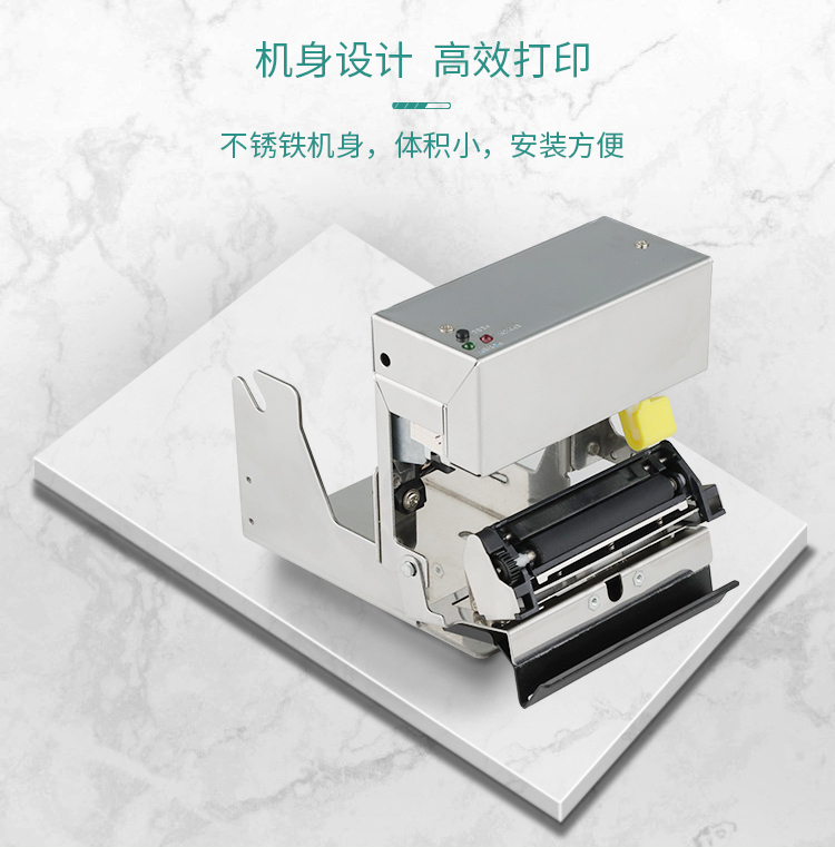 嵌入式 熱敏打印機(jī)介紹:這款嵌入式打印機(jī)是58mm熱敏打印機(jī),采用不銹鐵金屬外殼,耐腐蝕不易生銹,機(jī)身小,嵌入安裝簡(jiǎn)單易維護(hù),打印紙熱敏紙耗材成本低,嵌入式熱敏打印機(jī)是存包柜排隊(duì)機(jī)等設(shè)備的打印模塊。