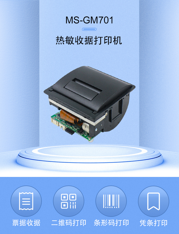 微型打印機介紹:美松根據微型打印機市場需求,自主研發一款58mm微型熱敏打印機,這款微小型打印機專為POS打印機開發,嵌入在金融POS或者商業POS打印機可隨身攜帶,嵌入式微型打印機只需要簡單安裝就能實現打印功能的打印模塊,微型熱敏打印機是醫療檢測、金融POS、商業POS等行業打印設備。