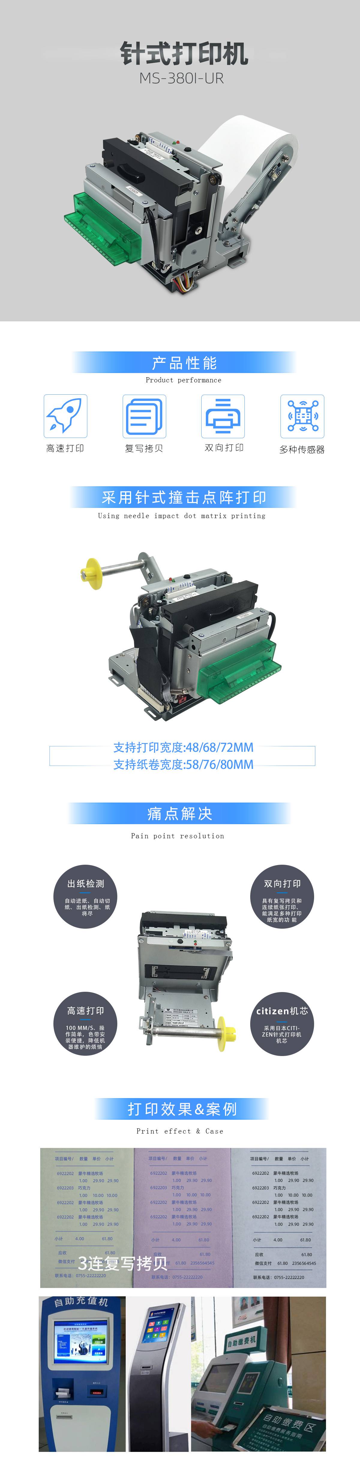 主要應用領域:銀行壁掛自助設備,自助加油機,自助電話機,充值機,繳費機,自助停車場發卡機,優惠券打印機,排隊機,訪客機等領域的使用。