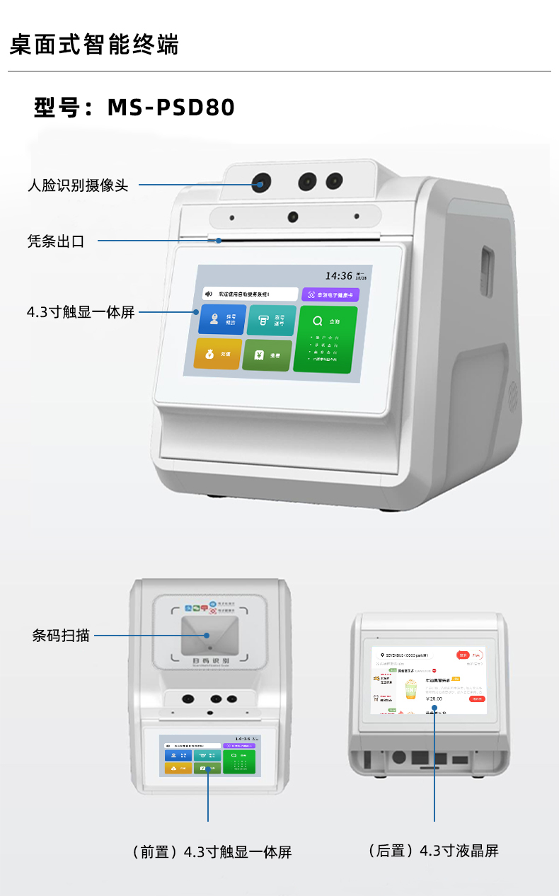 1.中央處理器六核64位,Android 6.1操作系統 2.智能掃一掃支付具有雙聲道立體音喇叭 3.高清AI人臉識別攝像頭,觸摸屏雙屏異顯 4.支持4G全網通/WIFI/藍牙連接,支持微信支付寶云閃付等移動支付