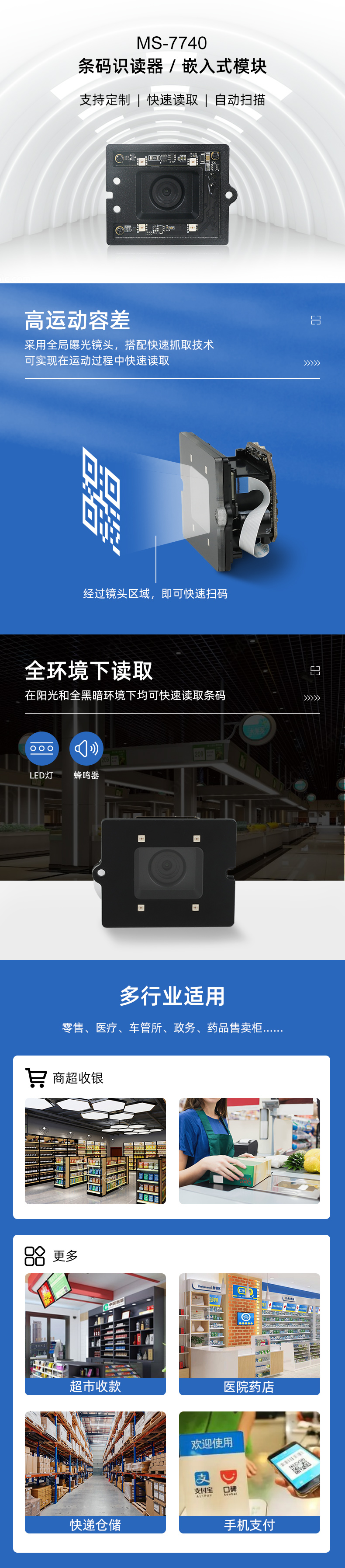 工業級紅色補光 高密度超長反光條碼讀取 寬壓3.6-6V 支持電壓復位 支持2M/S的運動中讀碼 內置RS232 和USB接口和蜂鳴器 支持陽光下和完全黑暗環境識讀