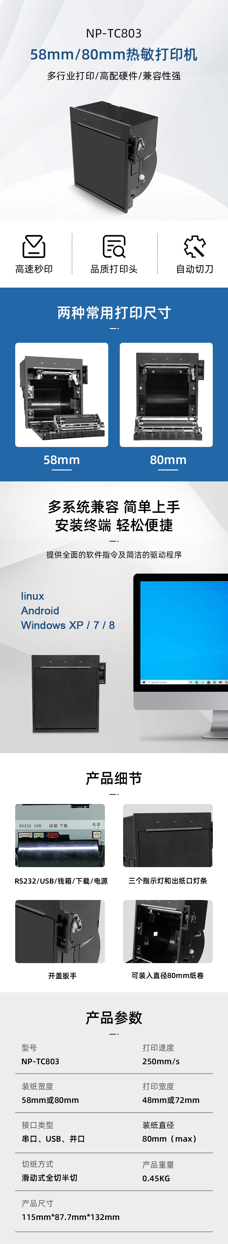 1.擁有易裝紙、滑動式自動切紙等功能;擁有多種安裝方式 2.紙將盡可手動調(diào)節(jié)大小,最精確的紙將盡檢測(可精確張數(shù)) 3.按開蓋扳手;通過開蓋按鍵 ;電腦發(fā)送開蓋指令 4.帶有堵紙器檢測狀態(tài);多樣傳感器協(xié)助控制 5.無人值守內(nèi)嵌式熱敏打印機 6.醫(yī)療、政務(wù)、零售、餐飲、加油站等行業(yè)的自助終端打印設(shè)備