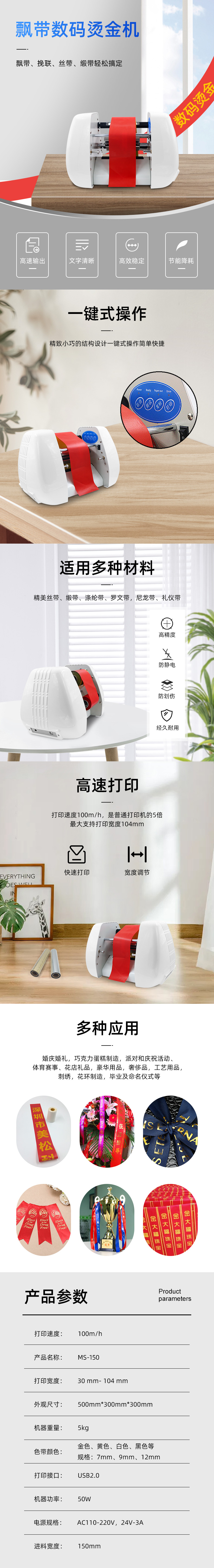 美松全自動絲印機 1.體積小(桌面擺設) 2.速度快(是普通打印機的5倍) 3.打印成本超低,每條僅需3毛線 4.任意在絲帶上打印精美的圖案,文字,標志 5.超寬的打印幅度,可滿足不同客戶的需求 6.采用進口高精度,防靜電,防劃傷打印頭,經久耐用 7.邊排版邊打印,現打現用,方便快捷 8.支持各種軟件設計,可輕松操作即時打印