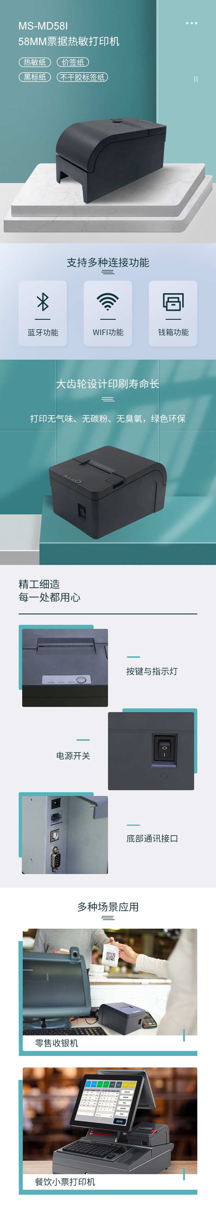 ⑩優質選材 質量可靠。長壽命齒輪、形式熱敏打印機頭以及較低的返修率、獲得了客戶—致好評,是您開店的好幫手。