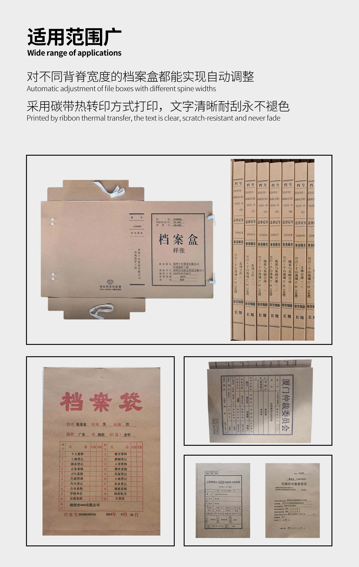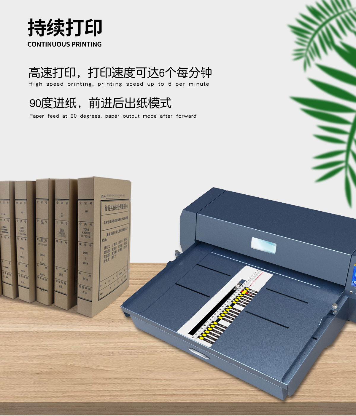 美松MASUNG自主研發(fā)A3+標準檔案盒封面打印機 1.專業(yè)打印牛皮紙,證件內(nèi)頁,無酸紙檔案盒 2.對接API,EXCEL,ERP等數(shù)據(jù)庫專業(yè)的編輯軟件,自定義打印 3.USB連接操作簡單,耗材成本低,長久保存 4.智能打印,整齊規(guī)范化,助力智慧辦公