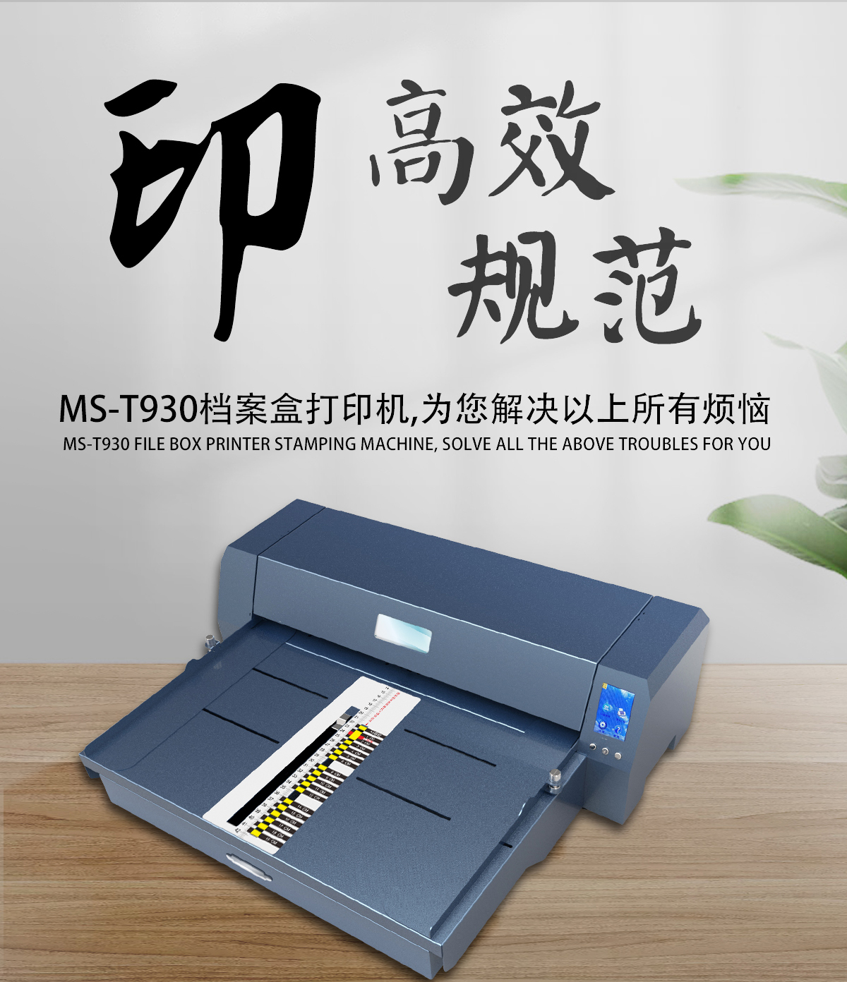 美松MS-T930檔案盒熱轉(zhuǎn)印打印機,熱轉(zhuǎn)印設備,熱轉(zhuǎn)印機器針對已印刷的檔案盒封面進行二次加印,或單張空白版面牛皮紙,無酸紙,證件內(nèi)頁進行打印的設備.采用碳帶熱轉(zhuǎn)印方式打印,文字清晰耐刮永不褪色.電腦排版完即可通過USB打印無需制版,A3+標準檔案盒幅面,方便快捷成本低廉,機構(gòu)可靠性高,操作,維護簡單.適用于公檢法,檔案局,審批局,醫(yī)療診所,教育機構(gòu),煙草,房產(chǎn)管理,電力,鐵路等行業(yè)。