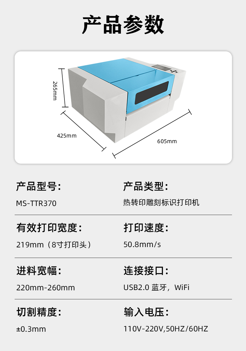MS-TTR370是由美松自主研發生產的一款熱轉印的標識標牌打印機。 和美松其他的熱轉印標識標牌打印機優勢在于,MS-TTR370是一款雕刻打印機, 在打印完成標識后,能夠直接對標識標牌進行雕刻切割工作,無需手動人工切割 MS-TTR370具有高精度的切割,誤差小于0.3mm,對各種圖形的標識都能輕松完成打印切割 應用于多種行業,比如電力標識標牌,施工危險警示標識標牌,園林管理標牌,樹木介紹標牌,道路標識標牌