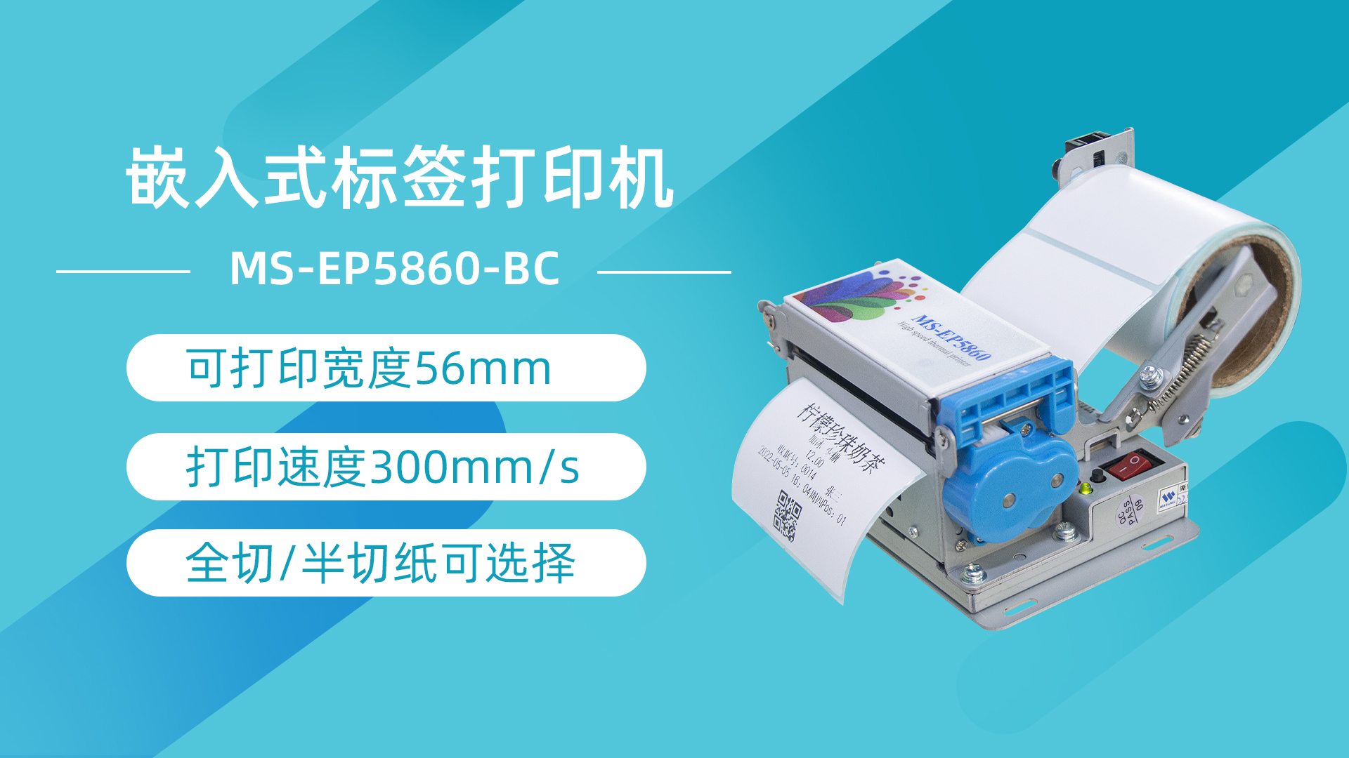 美松自助標簽打印機MS-EP5860-BC采用的是標準通訊接口,可在不同通訊情況下使用不同的通訊接口,采用了大齒輪嵌入,打印走紙力度大,速度快,側翻蓋打印頭的設計,可以讓卡紙維護更加簡單便捷。打印機支持全切、半切兩種輸出模式,滿足顧客不同的使用需求,另外還具有探縫傳感器功能檢測,適用于打印紙帶間隙不干膠熱敏紙。機身外觀小巧,方便嵌入在不同的終端設備中,同時支持二次開發,提供開發資料,可裝入紙卷直徑 80mm,也可調節紙倉支架。