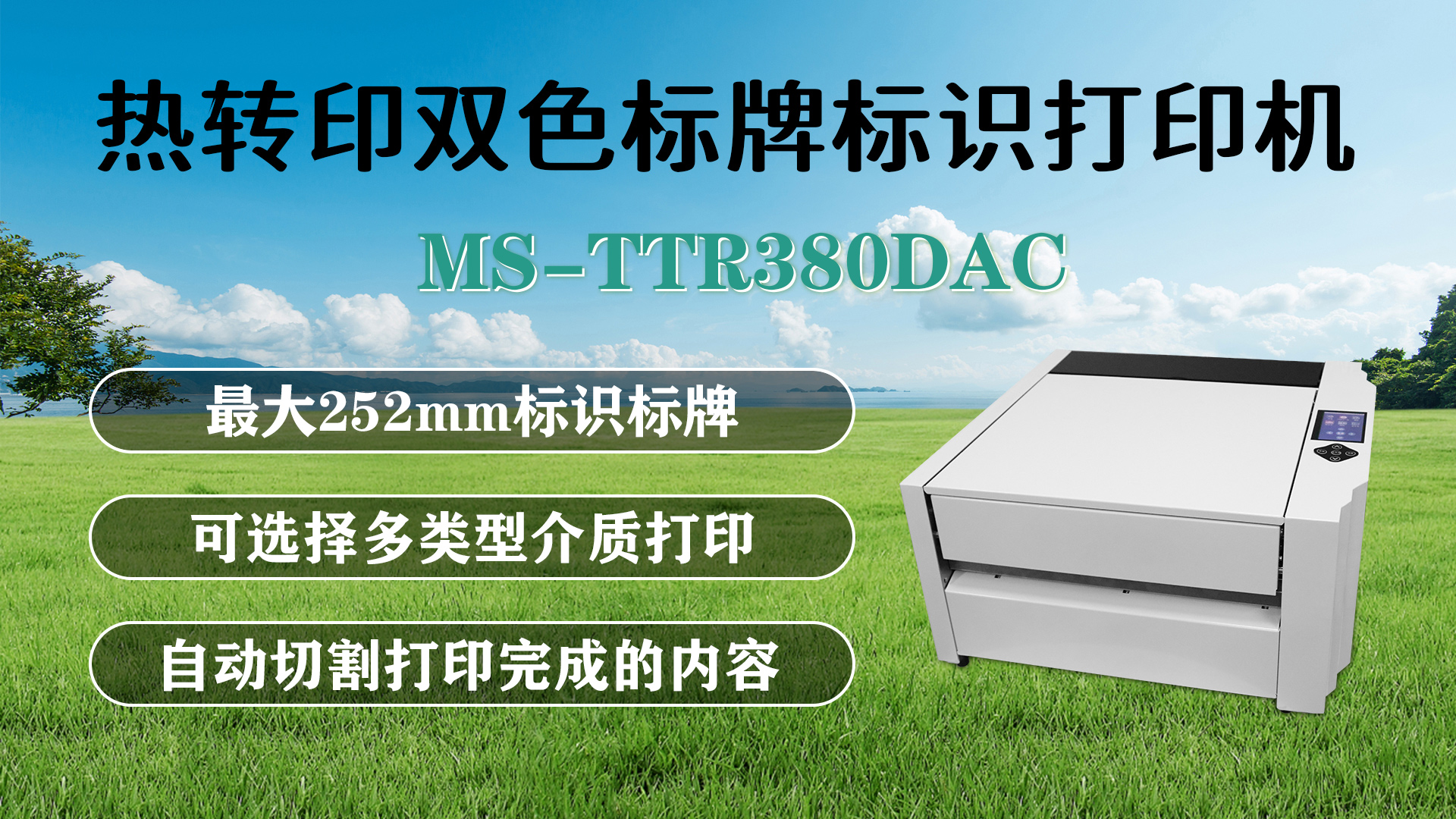 首先重點介紹的MS-TTR380DAC這款大型設(shè)備采用的是熱轉(zhuǎn)印技術(shù),熱轉(zhuǎn)印標識牌是—種常用的標識和標牌制作方法,其主要好處包括以下幾個方面: