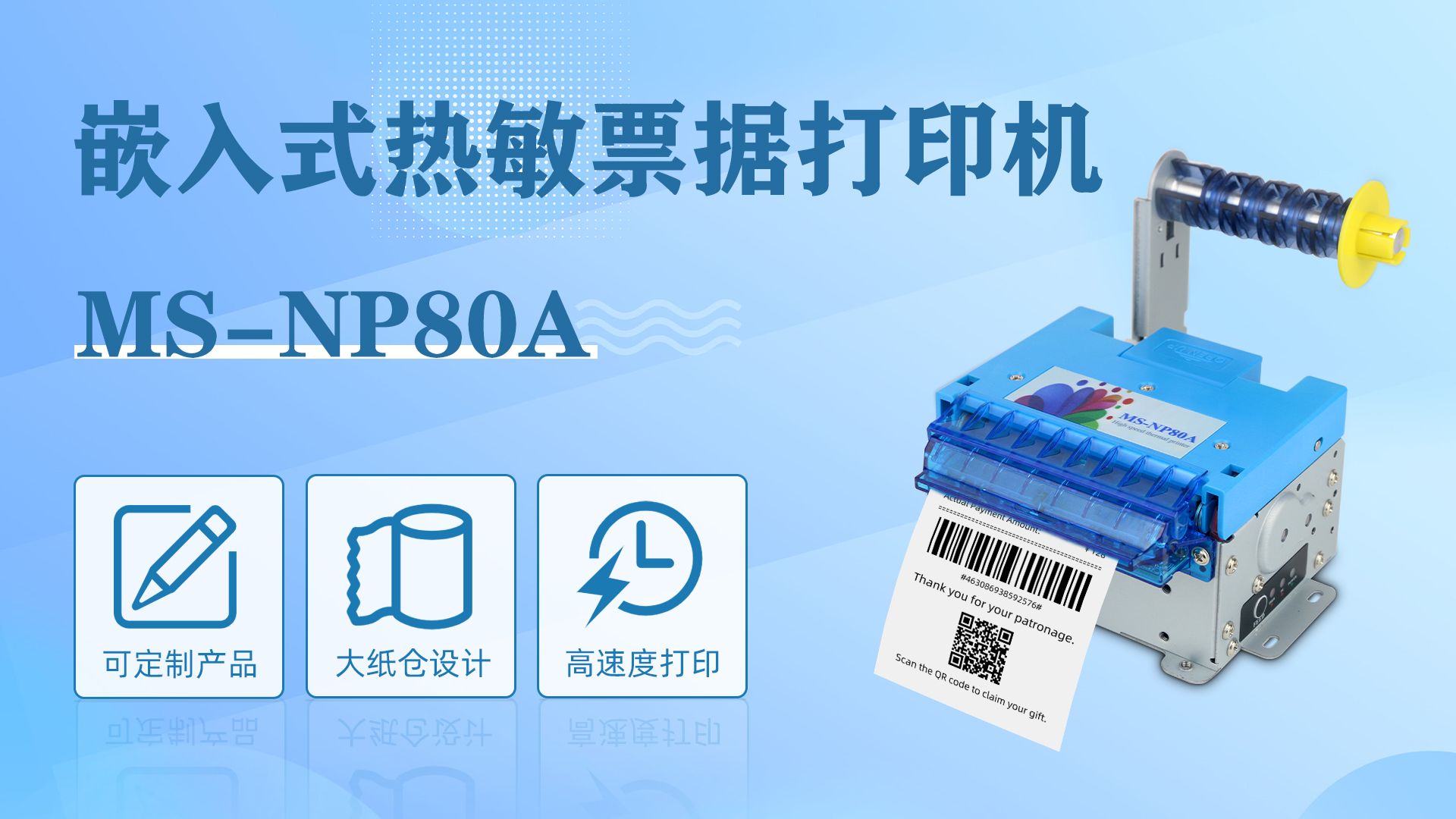MS-NP80A作為嵌入式熱敏打印機(jī)的代表,通過(guò)高度集成化設(shè)計(jì)、熱敏打印的低成本與高效性,以及針對(duì)行業(yè)需求的定制化功能(如大紙卷容量、自動(dòng)切紙),成為自助設(shè)備領(lǐng)域的理想選擇。其應(yīng)用覆蓋交通、醫(yī)療、零售、公共服務(wù)及工業(yè)場(chǎng)景,為現(xiàn)代化設(shè)備提供了可靠、便捷的打印解決方案。